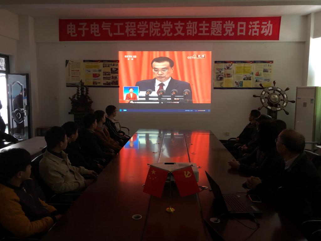 见证追梦的时代,感悟祖国的发展。3月5日上午9:00,第十三届全国人民代表大会第二次会议在北京开幕。电子电气工程学院组织部分师生在学院会议室通过互联网收看开幕式直播盛况,认真聆听、学习国务院总理李克强关于政府工作的报告。