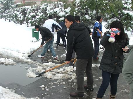 本站讯11月11日至12日连降大雪。为了避免积雪给师生出行带来不便,机电学院师生于12日下午3点组织开展了清扫积雪活动。