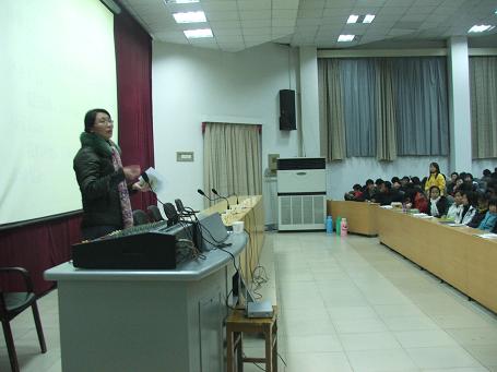 讲座在主持人的欢迎致辞中拉开帷幕,张老师首先从角色改变与心理健康,大学生的学习心理、考试焦虑与心理健康,大学生择业的心理问题这四个方面给大家作了详细的讲解并针对同学们出现的问题给予很好的建议,然后是老师与同学互动环节,大家以提问和递纸条的形式向老师述说心中疑问,问题涉及恋爱,学习,就业等诸多方面,张老师都一一给与解答,最后,讲座在主持人的欢快歌声中结束。