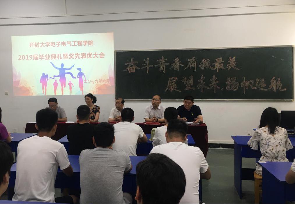 6月13日上午11点,电子电气工程学院在6号楼405教室举办“奋斗青春 有我最美”之“展望未来,扬帆起航”2019届毕业生典礼暨奖优表先大会,校党委副书记储建新出席本次典礼,学院党总支书记张红艳、副书记杨辉、副院长高明远、边疆及全体毕业生毕业生参加了会议。会议由党总支副书记杨辉主持。