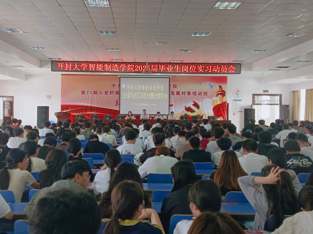 为进一步落实人才培养方案要求,提升学生实践能力和职业素养,确保2026届学生实习工作顺利进行。5月29日下午,智能制造学院在8号楼六楼报告厅举行实习动员大会。院领导班子、23级辅导员以及23级全体学生参加大会。会议由李鹏书记主持。