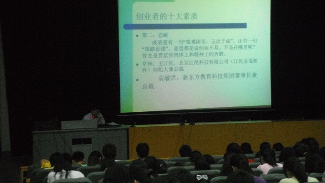 本次就业指导是由我院党总支副书记徐纪珂主讲,《礼记.中庸》中云:“凡事预则立,不预则废。”大学生创业亦同如此,大学生站在创业十字路口,多数学生茫然失措,这其中很重要的原因就是在大学期间缺乏创业的准备。因此就业指导中,徐书记用生动的语言,列举许多成功人士的创业经历,总结了他们身上共同具备的创业十大素质,为准备创业的大学生开启成功之门奠定了坚定的基础。