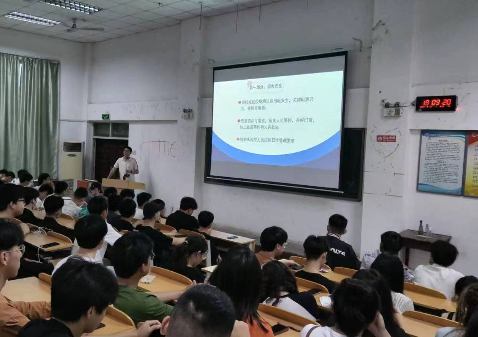 辅导员冯真鹏首先给大家分享了春季传染病防治相关知识,叮嘱同学们做好个人防护,加强身体素质提升,注意饮食卫生,生病及时就医。其次,强调人身财产安全,宿舍安全用电,人走落锁,提高反诈意识。再者,对学生实习情况进行通报,提醒同学们注意实习时长,确保完成实习任务,同时保质保量完成毕业设计。