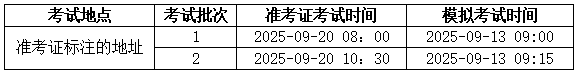 1.模拟考试时间:2025年9月13日9:00-9:30,具体时间见下表。