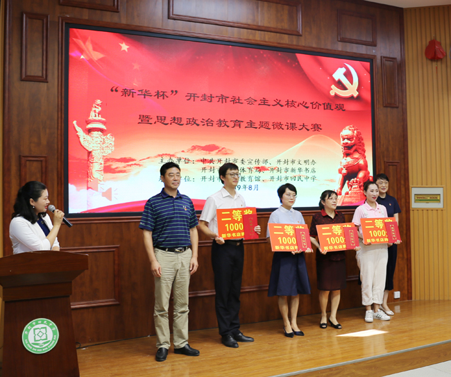 8月7日下午,由中共开封市委宣传部、开封市文明办、开封市教育体育局、开封市新华书店主办,开封市电化教育馆、开封市回民中学承办的“新华杯”开封市社会主义核心价值观暨思想政治教育主题微课大赛在本市回民中学报告厅成功举行。我校人文学院青年教师孟晓辉在参加比赛的12人中脱颖而出,荣获二等奖的好成绩(总分排名第二),同时我校荣获“优秀组织奖”荣誉称号。