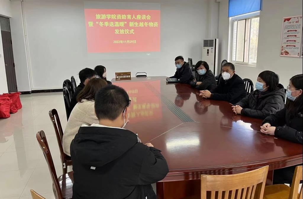 为把党和国家对家庭经济困难学生的关怀落实落细,确保家庭经济困难学生温暖过冬,11月29日下午,旅游学院在院二楼会议室开展“资助育人”座谈会暨“冬季送温暖”新生越冬物资发放仪式。学院党总支书记尤影,院长丁永琦,全体辅导员和受助学生代表参加了本次仪式。