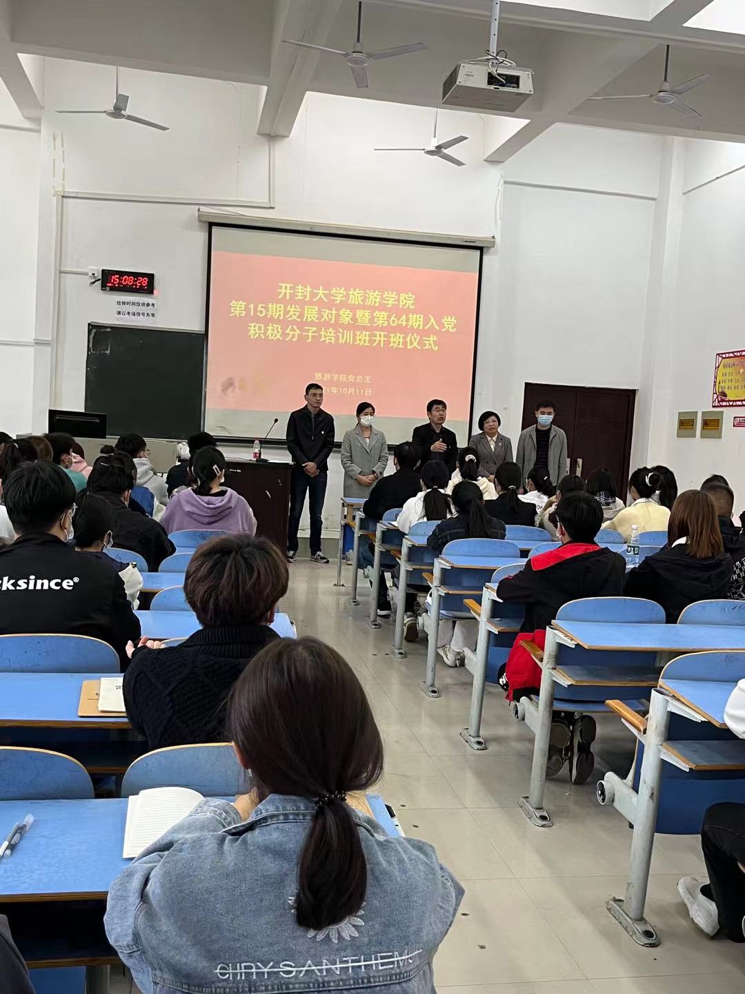 10月11日下午,旅游学院在15号楼420教室举行了第64期入党积极分子暨第15期发展对象开班仪式。参加开班仪式的有校组织统战部部长赵海胜,旅游学院党总支书记尤影,团总支书记姚文亮,辅导员陈加龙、白栩及全体81名学员。仪式由陈加龙同志主持。