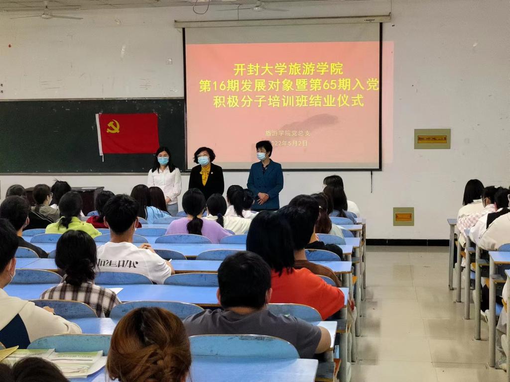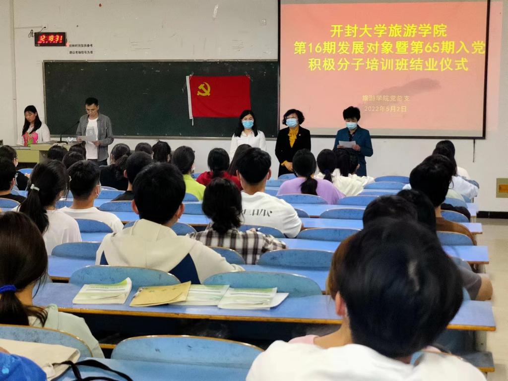 5月2日,旅游学院在15号楼419教室举行第16期发展对象暨第65期入党积极分子培训班结业典礼。旅游学院党总支书记尤影、副书记杨艳丽及全体辅导员出席典礼。结业典礼由旅游学院学生党支部组织委员陈加龙主持。