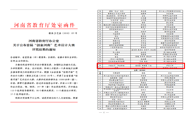 学生作品获得河南省教育厅首届“创意河南”艺术大赛金奖