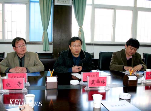 本站讯 2011年3月3日下午,开封市外事侨务办公室主任刘威、副主任韩升良、涉外管理科科长陈雷一行3人莅临我校就学校外事交流、国际教育合作等事宜进行考察调研。校党委书记莫华林、校长拜五四,党政办、国际教育学院负责人参加会谈。