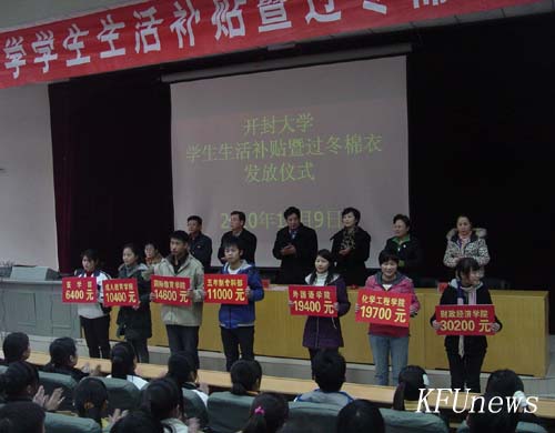 随后,校领导为2590名家庭贫困学生发放了生活补贴,并为542名学生发放了过冬棉衣。
