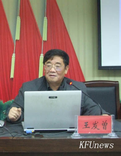 本站讯 12月24日上午,贯彻落实“党的十七届五中全会和河南省委八届十一次全会精神”宣讲报告会在我校国教学院多功能厅举行。报告会上,河南大学教授王发曾为我校200余名师生作了以“深刻结合全会精神,科学谋划发展大计”为主题的报告。校领导拜五四、储建新、万是明、范金梅、杜爱灵,党委委员、校党政办公室主任成芳及各处室、院部科级以上人员代表、学生代表听取了报告。报告会由党委副书记、副校长储建新主持。