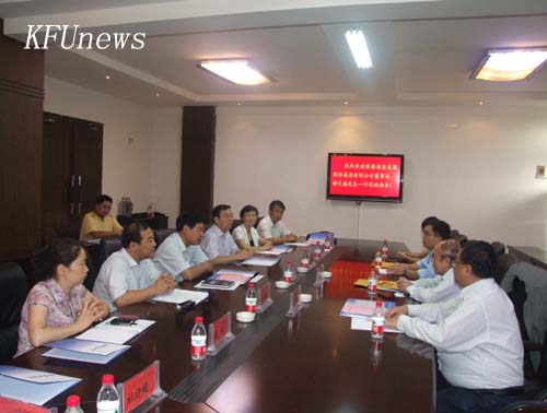 本站讯 8月18日下午,香港迪臣发展国际集团有限公司董事局谢文盛先生一行4人莅校考察,校领导莫华林、拜五四、储建新、赵辉在行政楼二楼会议室接待来访客人,党政办、计财处、发规办、机电学院等单位负责人参加会谈。