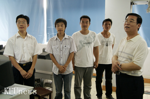 本站讯 7月6日,校长拜五四、副校长赵辉带领学校党政办公室、党委宣传部、教务处、实验实训管理处的负责人到管理科学学院电子商务实训室,亲切看望了正在紧张准备参加企业管理沙盘全国大赛的师生。