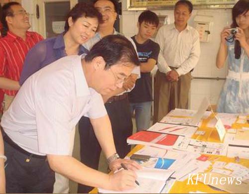 本站讯 6月11日上午,校领导拜五四、赵辉在相关部门负责人的陪同下参观了五年制专科部举办的学生电脑美术设计作品展,在参观过程中,校领导评价本次作品展示是对五年制专科部教学质量和学生学习效果的综合检验,是五年制专科部不断深化教学改革,因材施教的最好体现。参观后,校长拜五四为本次作品展题词留念。