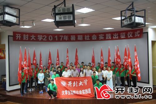 开封网讯 6月24日上午,bat365在线官方网站“高举团旗跟党走,青春献礼十九大”2017年暑期社会实践活动出征仪式在国际教育学院一楼报告厅举行。校党委副书记储建新出席仪式,党委宣传部、学生工作部、团委等部门负责人、院部团总支书记及200余名参加社会实践活动的青年志愿者参加了仪式。
