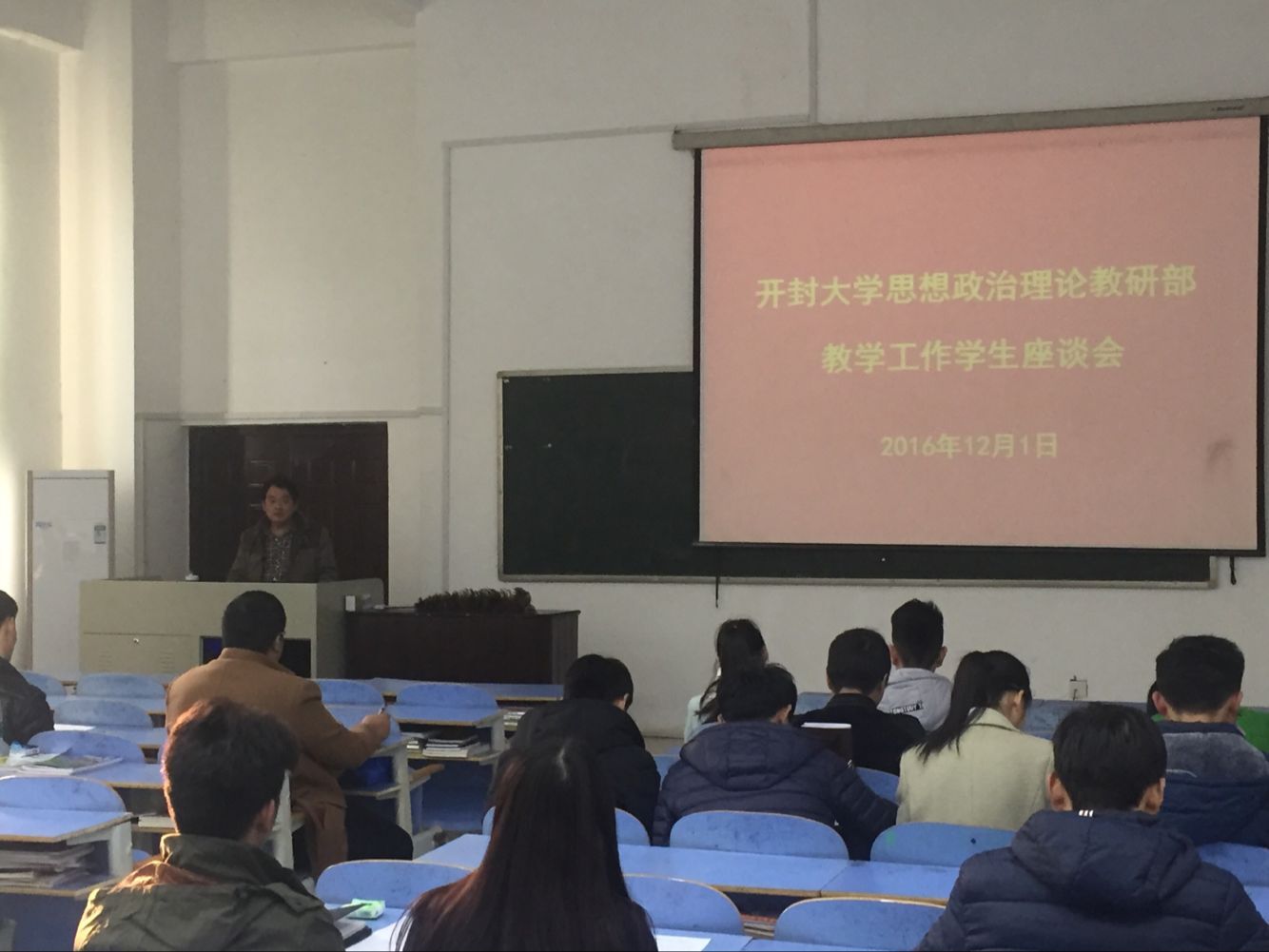 这次座谈会的召开,我部门及时准确的把握了思政课教学状况,真实了解学生学情实际,切实增强思政课教学的针对性。