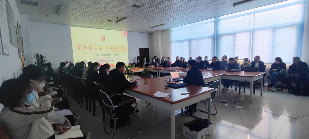 5月11日上午,马克思主义学院院长常素芳教授到图书馆参加深入学习宣传贯彻党的二十大精神宣讲报告会并作报告,报告会在图书馆107室举行,图书馆党政领导班子、全体教职工到场聆听了报告,图书馆馆长孙伟主持本次宣讲报告会。