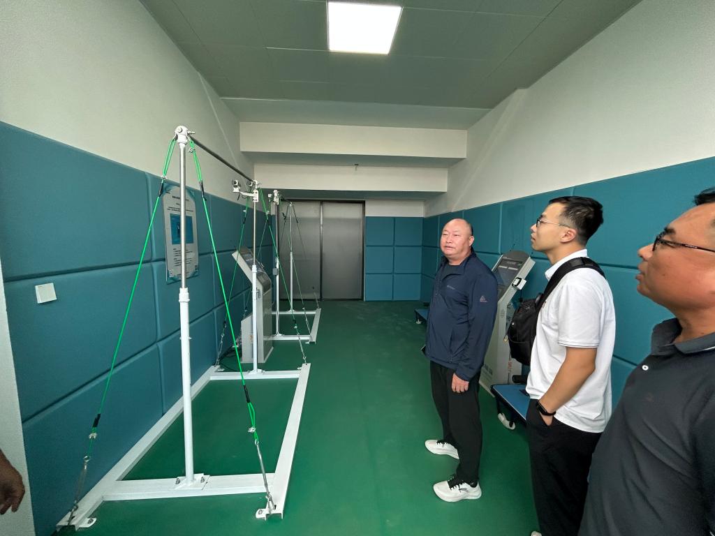 黄河水利职业技术学院体育部主任刘盎,副主任蔡寄平,体测负责人刘虎老师介绍了学生体测开展情况,体测等级证书发放流程,以及在体测工作中的宝贵经验。并带领参观了学校体测智能化设备。