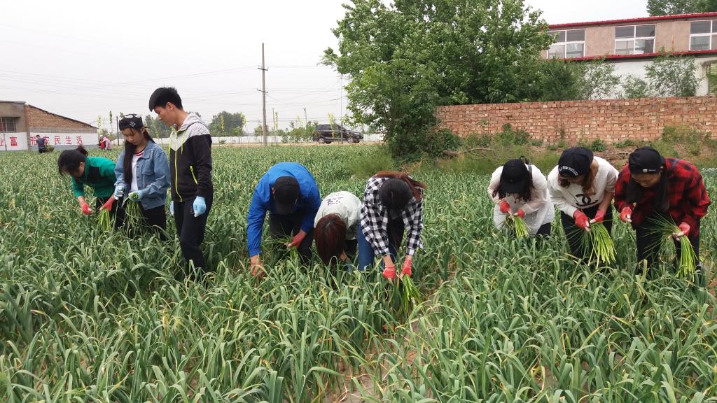 5月1日上午,外国语学院团总支书记肖丽敏带领学院20名青年志愿者到祥符区西姜寨乡帮助劳动力少的农户抽蒜薹。