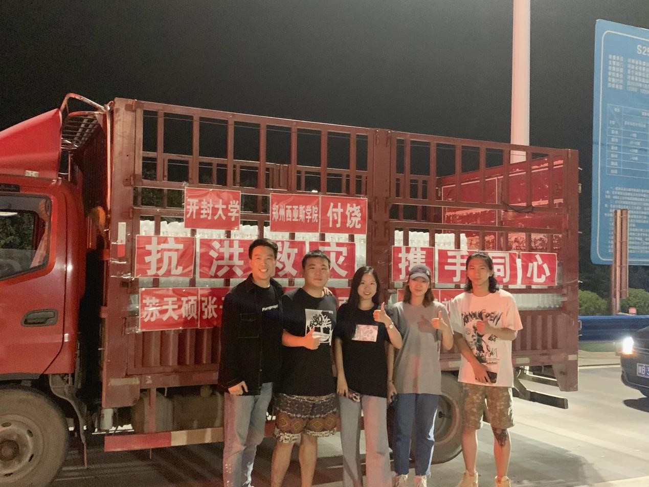 2021年7月22日晚,bat365在线官方网站外国语学院2020级学生王若羽,刘帅杰,杨甜甜,苏天硕在了解灾区情况后,组织开展了募捐活动,将募捐物资送往郑州一线,通过互联网发布的信息找到了当地负责人并取得联系,成功将募捐的10000瓶纯净水送到郑州大学第三附属医院,为灾区群众送去温暖。