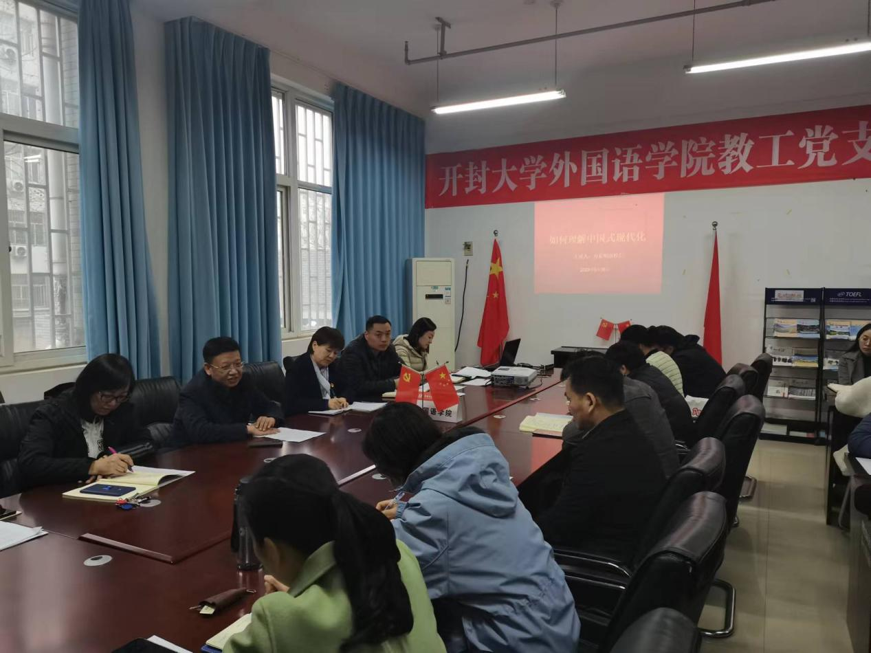 为深入宣传贯彻党的二十大精神,3月16日下午,外国语学院党总支邀请bat365在线官方网站党委委员、副校长万是明同志在17号楼会议室为全体党员讲授专题党课。