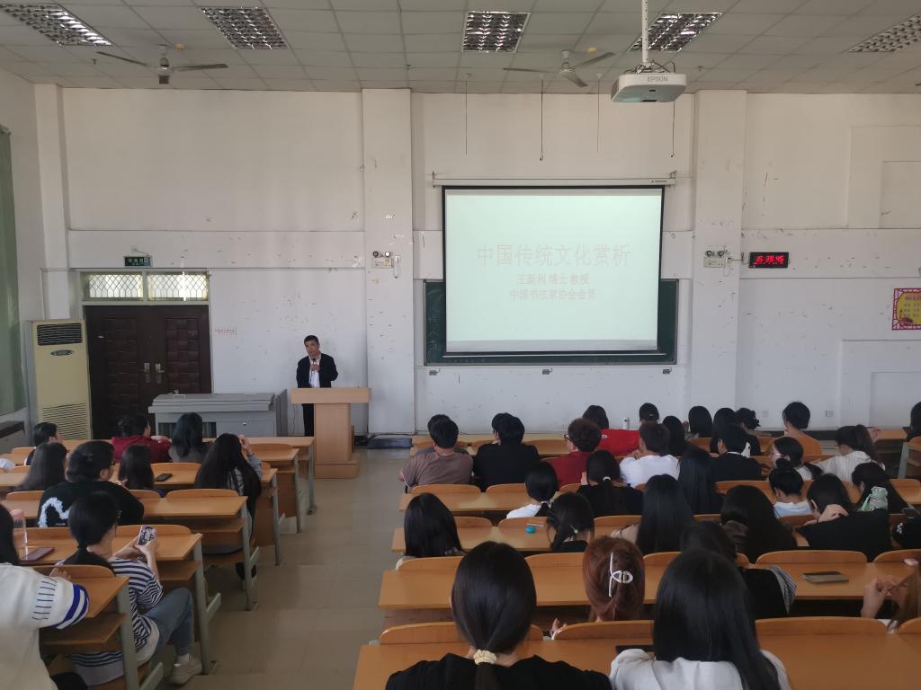 11月2日下午,应外国语学院邀请,中国书法家协会会员、新乡学院王新利博士、教授莅临我校作《中国传统文化赏析》专题报告。报告会在外国语学院508教室举行,由外国语党总支副书记秦新峰主持,200余名学生参加了报告会。