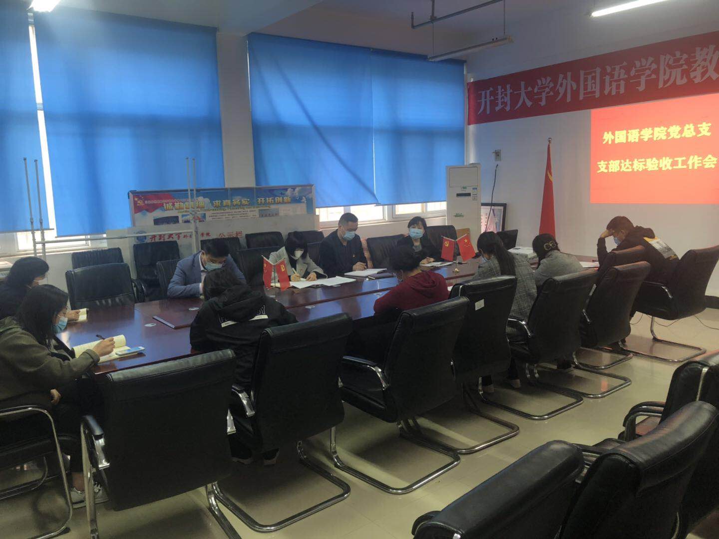 4月20日下午,外国语学院党总支根据《bat365在线官方网站党支部建设“两化一创”强基引领三年行动计划(2019-2021)实施方案的通知》文件要求召开党支部达标验收工作会。会议由院党总支孟祥茹主持,院党总支委员、教工党支部委员、学生党支部委员和党小组长参加会议。