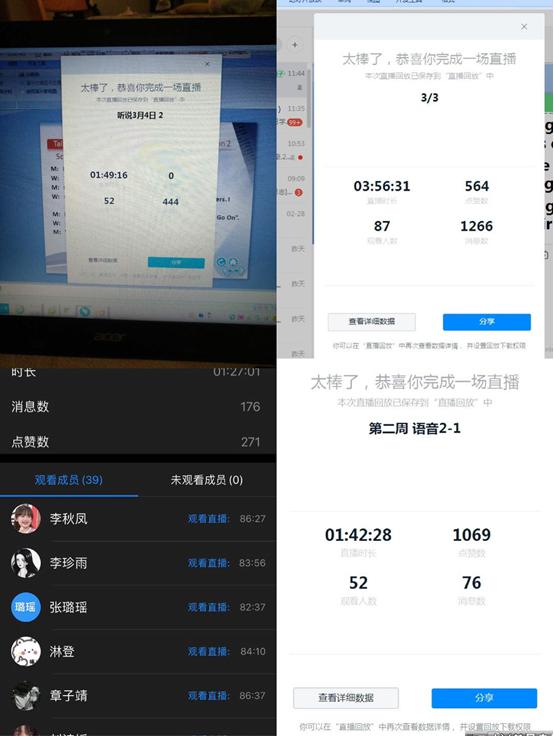 2.教师通过在线连麦功能,以及作业形式的改变(如上传音频、视频),及时调整教学方式和学习任务,确保在线教学的质量和效果。