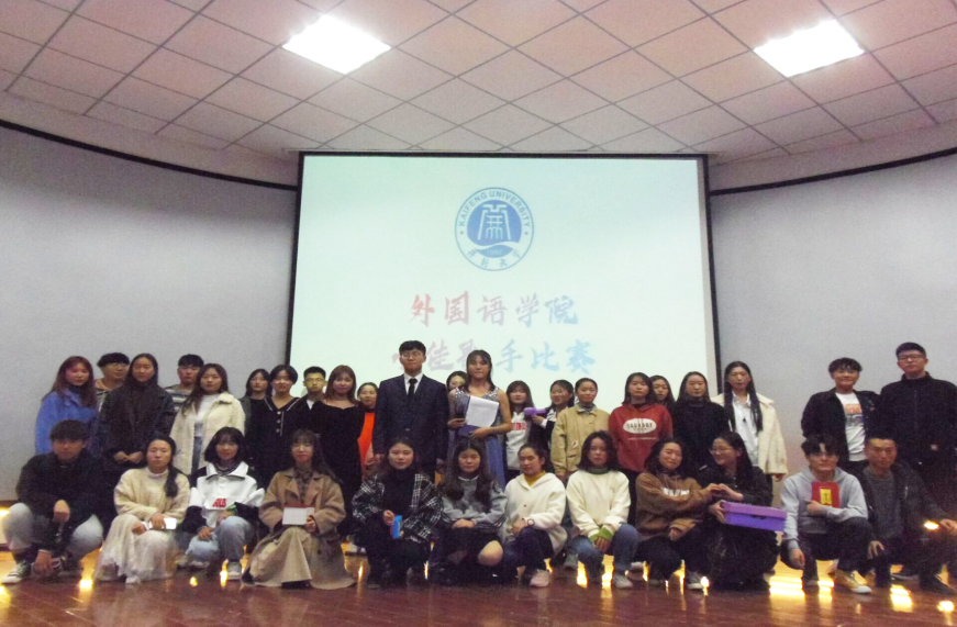 外国语学院为丰富校园文化生活,营造积极向上的校园文化气氛,给同学们提供展示才华的舞台,于2019年11月17日晚,外国语学院在国教一号报告厅举办"十佳歌手大赛,学院三百五十多名学生观看了比赛。经过层层选拔,18名歌手成功晋级,站上了决赛的舞台。 院党总支副书记陈茜、全体辅导员和350余名学生参加此次活动。决赛的场面异常火爆,怀揣着激情与梦想,选手们一上台,便让在场所有人感受到了他们展现才华的渴望和洋溢青春的热情。首先由KD1街舞社为我们带来的开场舞《lalalay》,热完场之后让我们正式进入到今天的主题,台下同学们热情高涨,呐喊着为上台的每一位选手加油、鼓劲、助威。《我怀念的》《多想在平庸的生活拥抱你》《岁月神偷》、《易燃易爆炸》 、《遇见》 、《阴天快乐》等一首首歌曲将比赛现场的气氛带动得淋漓尽致。中场由动漫社带来的舞蹈表演《KDA-POP STARS》将“十佳歌手大赛”推向高潮。参赛选手们精彩的演出,让我们感受了到他们的才华横溢,感受到他们了青春的个性飞扬。比赛的过程中,每个选手都站上了这个展现自我的大舞台,呈现了最完美的自己。最终19应用日语一班黄玉婷和19级商英二班马识途并列了本次比赛的冠军。