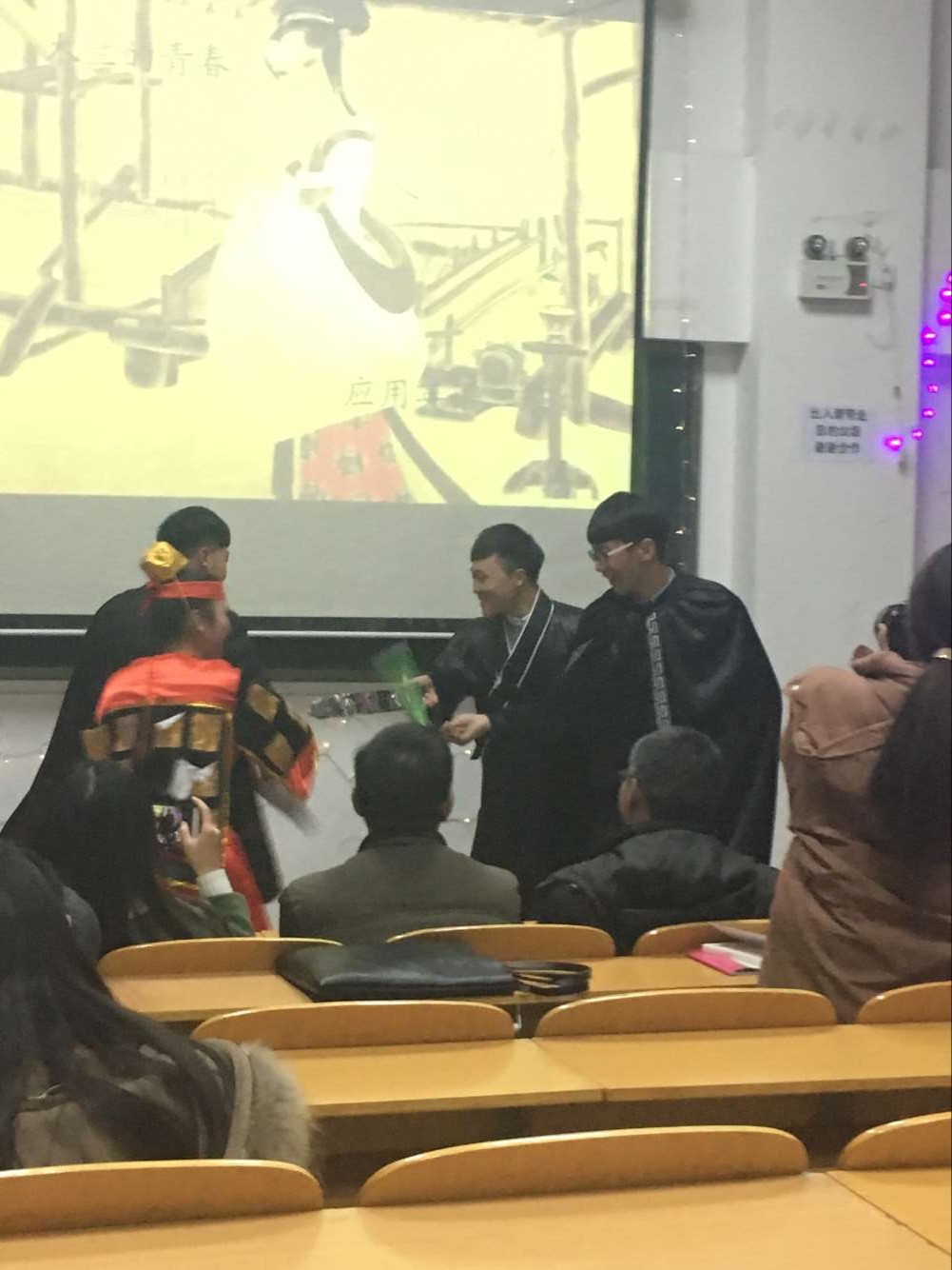 2016年11月29日晚7点外国语学院周末文化广场话剧大赛在外国语学院17号楼508教室举行,参加此次活动的有龚国久老师,冯雪芳老师,吴贵武老师。大一全体新生和部分大二学生。