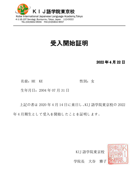 祝贺我院2019级应用日语专业学生方子怡获得日本京都情报大学院大学研究生入学资格