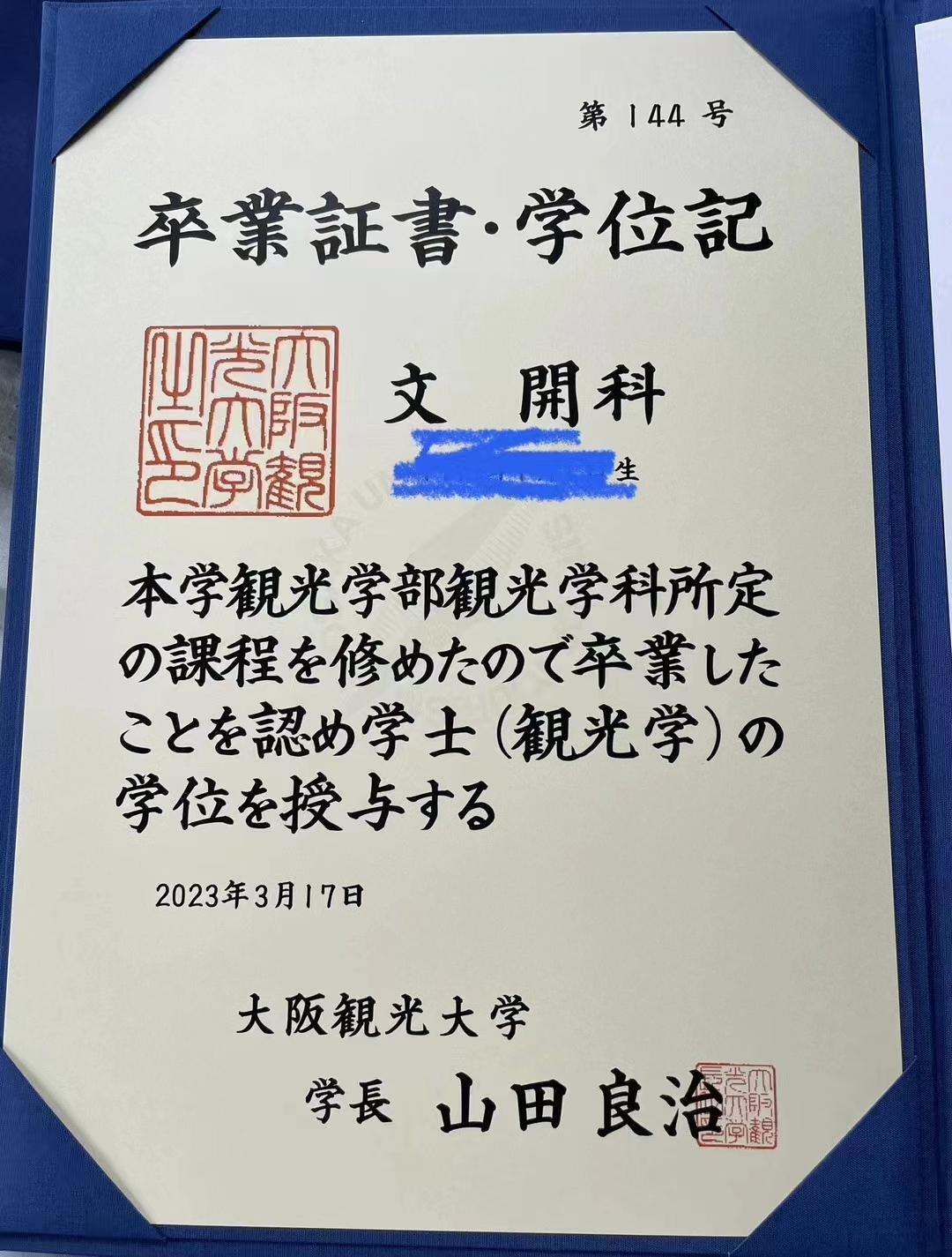 祝贺我院2020届毕业生文开科同学获得日本大阪观光大学学士学位证书
