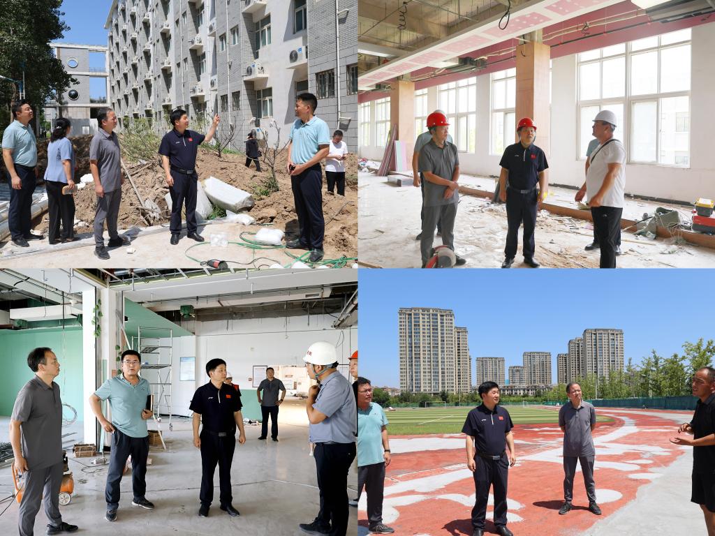 学生宿舍热水洗浴及直饮水项目、东苑餐厅装修项目、图书馆改造项目、西体育场维修项目检查调研现场