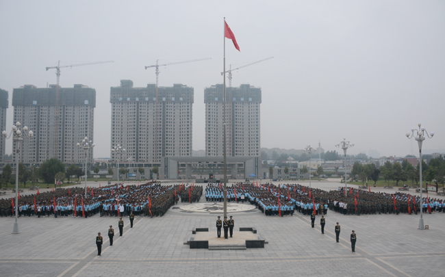 9月25日清晨,我校在大观广场隆重举行2017级新生升国旗仪式。校党委副书记储建新、工会主席成芳出席了升旗仪式。全体教官、军训营营长、我校学工部负责人、各学院党总支书记、副书记、新生辅导员及5000余名新生参加了此次升旗仪式。升旗仪式由校团委副书记杨艳丽主持。