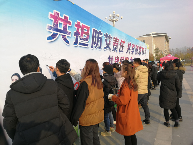今年的12月1日是第30个“世界艾滋病日”,11月30日下午,我校在大观广场举行2017年“世界艾滋病日”大型宣传活动。此次活动由开封市艾滋病防治工作委员会、开封市计划生育协会、开封市疾病预防控制中心联合主办,我校团委、土木建筑工程学院及计划生育协会承办,龙亭区计生协会协办。市人大常委会副主任张志超、市卫生计生委党组书记魏振峰、市爱卫办主任郑廷杰、市疾控中心主任杨跃进,我校党委副书记储建新、工会主席成芳出席了此次活动,开封市艾滋病防治工作委员会各成员单位、市疾控中心、各区计生协会、兄弟院校相关人员及我校部分师生参加了此次活动。活动由工会主席成芳主持。