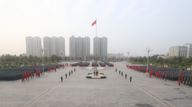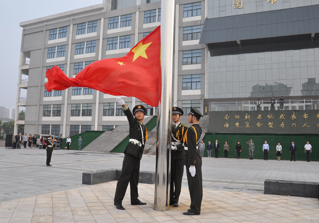 本站讯 917日清晨,我校在大观广场举行2018级新生升国旗仪式。校党委副书记储建新、工会主席成芳出席了升旗仪式。全体教官、军训团团长,我校校长办公室、党委宣传部、校保卫处、教务处、国有资产管理处、后勤服务中心负责人,各院部党总支副书记和新生辅导员及5000余名新生参加了升旗仪式。升旗仪式由学生工作部部长孙勇主持。