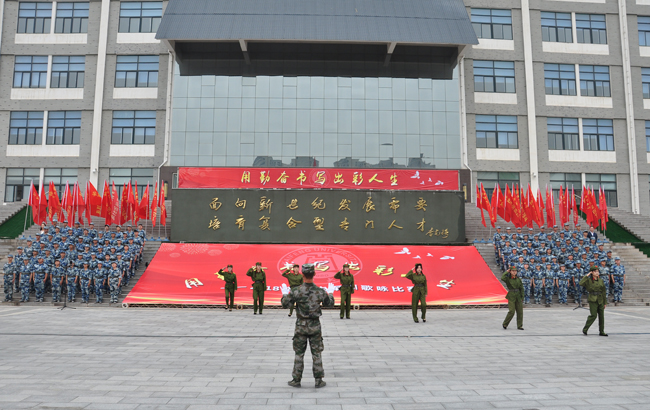 9月20日上午,我校“用勤奋书写出彩人生”——2018级新生军训歌咏比赛在图书馆前广场举行。校党委副书记储建新、工会主席成芳、新生军训团团长出席了此次活动,校党委办公室、学生工作部、团委、党委宣传部等部门负责同志,各院部党总支书记、副书记,新生辅导员,军训教官及2018级的全体新生参加了本次活动。