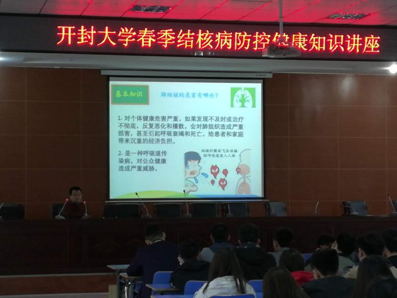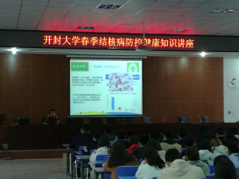 4月12日下午,在8号楼六楼报告厅举行bat365在线官方网站春季结核病防控暨艾滋病预防健康知识讲座。讲座由校医务室、学生处联合后勤服务中心共同组织,校医务室内科副主任医师刘玉老师主讲,全校各班300多名生活委员同学参加讲座。