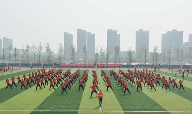 随后,我校教师和学生代表分别进行了广播操和跆拳舞表演,他们以整齐的步伐、标准的动作、飒爽的英姿展现了我校师生们精诚团结、奋发向上的精神风貌。