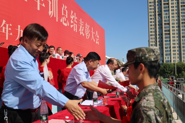 与会领导分别为获奖院部颁发荣誉奖牌,为优秀教官、军训先进个人颁发荣誉证书。