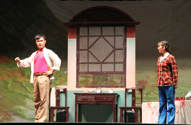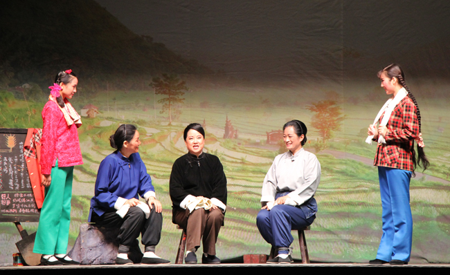 艺术家们为我校师生带来了现代戏剧《朝阳沟》。当演员唱到剧中精彩选段《走一道岭来 翻一道山》、《我坚决在农村干他一百年》和《亲家母对唱》时,台下师生掌声不断。
