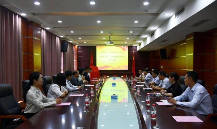 本站讯 5月23日上午,我校与开封市第五人民医院(以下简称“市五院”)“校医合作”签约揭牌暨聘任仪式在市五院举行。市五院党委书记李志献、院长王年喜、工会主席刘树林、纪委书记陈金红、副院长王成柱、相关科室负责人及聘任专家代表,我校党委副书记储建新,学生工作部、心理健康教育中心相关负责人,心理健康教育专兼职教师代表出席签约揭牌暨聘任仪式,仪式由王年喜主持。