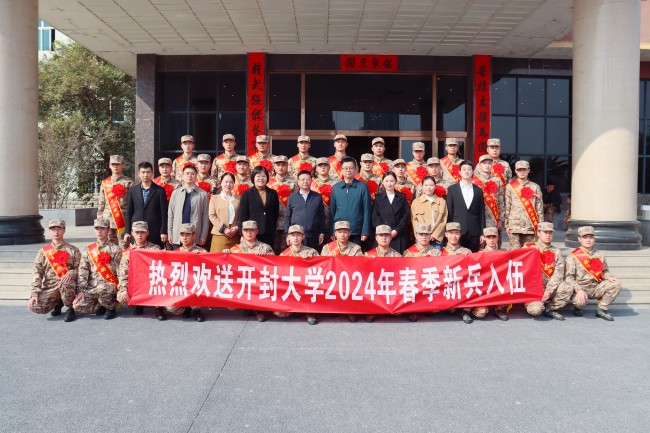 本站讯 3月15日下午,我校在开封市民兵训练基地举行2024年度春季入伍学生欢送仪式。校党委委员、副校长万是明出席仪式,校武装部、学生工作部负责人,院部教师代表及34名入伍学生参加仪式,仪式由校武装部部长付喆主持。