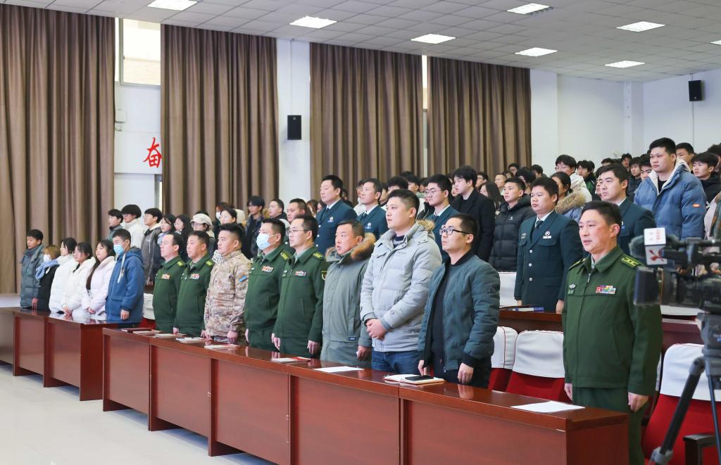 本站讯 12月28日下午,开封市2024年上半年征兵集中宣传活动在我校行政楼第一会议厅举行。开封军分区大校司令员朱宝红,校党委书记谭贞,市政府副市长袁钢,军分区大校副司令员、市征兵办公室主任魏家伟,市教育体育局二级调研员王晓波,副校长万是明,军分区动员处上校处长、市征兵办公室副主任刘磊,军分区政治工作处上校主任江同山出席活动。开封市城区各人武部主官,开封各高校征兵工作站站长,我校师生代表参加活动。活动由魏家伟主持。
