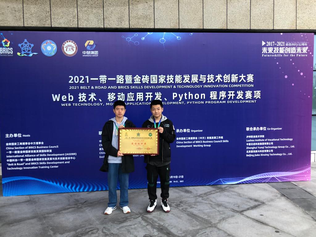 本站讯 近期获悉,2021“一带一路”暨金砖国家技能发展与技术创新大赛—Web技术、移动应用开发、Python 程序开发、、小程序应用开发赛项国内赛决赛项目10月16-21日分别在泸州职业技术学院和深圳职业技术学院举行,我院组建的参赛团队在大赛中共获得一等奖1项、三等奖2项、优秀奖6项,学校荣获“最佳组织奖”,并获得参加2021年佛山国际赛的参赛资格。
