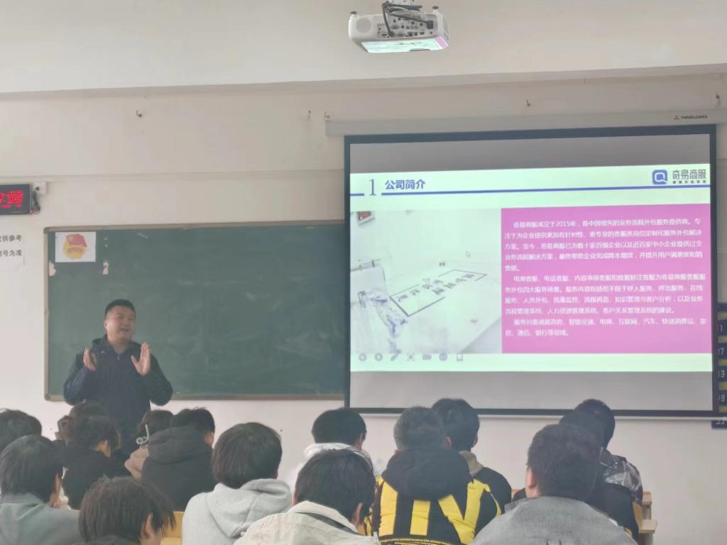李红礼在宣讲会之前,代表学院向北京奇易企业管理有限公司表示热烈欢迎,并鼓励同学们以“先就业再择业”的就业方式,开启自己的实习和就业阶段。宣讲会上,公司负责人向同学介绍公司文化、企业发展方以及工作内容等方面,并与同学们进行了热烈的互动,解答同学们提出的各种问题,会后有意向的同学又与企业方的工作人员进行了深入交流。