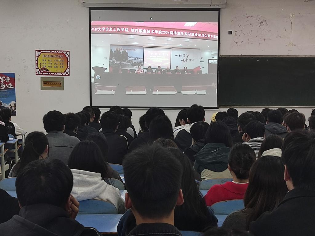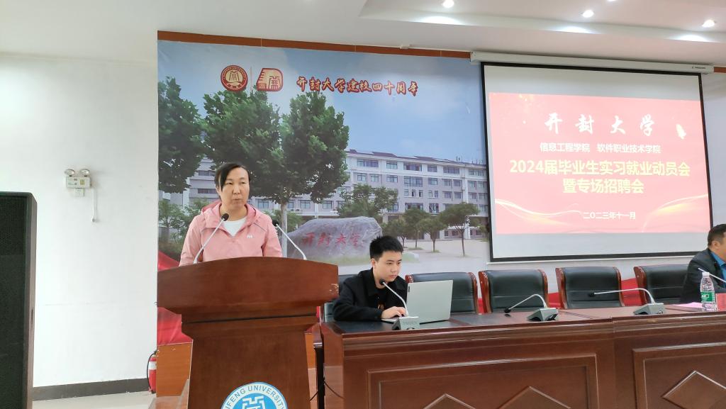 为深入贯彻党的二十大精神,落实党中央、国务院“高质量充分就业,强化就业优先”的决策部署,11月4日,信息工程学院、软件职业技术学院在8号楼报告厅召开2024届毕业生实习就业动员大会暨专场招聘会。学校就业与校企合作处副处长王亚辉、信息工程学院党总支书记袁震、院长张新成、副院长李响、王晓婷及各教研室主任、辅导员老师和764名毕业生参加此次会议,党总支副书记李红礼主持会议。大会采用线上线下相结合的方式,设置了一个主会场,两个分会场。