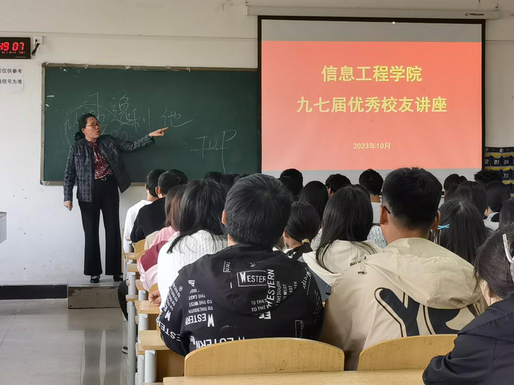 本站讯 10月25日中午,信息工程学院优秀校友、深圳市宇星鸿精密科技有限公司负责人陈艳霞到校招聘并开展讲座。信息工程学院院长张新成、校就业与校企合作处副处长王亚辉、信息工程学院就业和校企合作工作负责人以及100多名学生在3号楼402教室参加讲座及专场招聘会。