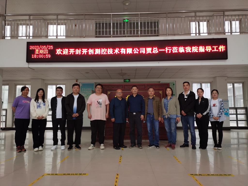 会议开始,张新成院长对贾经理一行表示了热烈的欢迎。随后校企双方进行了校企合作的揭牌仪式,并参观了信息工程学院农业物联网实训中心,设施农业与装备教研室主任李林老师对实训中心做了详细介绍,双方在现场进行了相关技术探讨。之后,双方在会议室进行了深度座谈。开封开创测控技术有限公司技术副总经理张鹏程介绍了其主要业务领域,如自动化仪表、智慧农业等。张院长介绍了近年来学院的专业发展情况和产教融合业绩,双方针对当前业界新兴领域交流了看法,并在专业业务中探索合作方向。